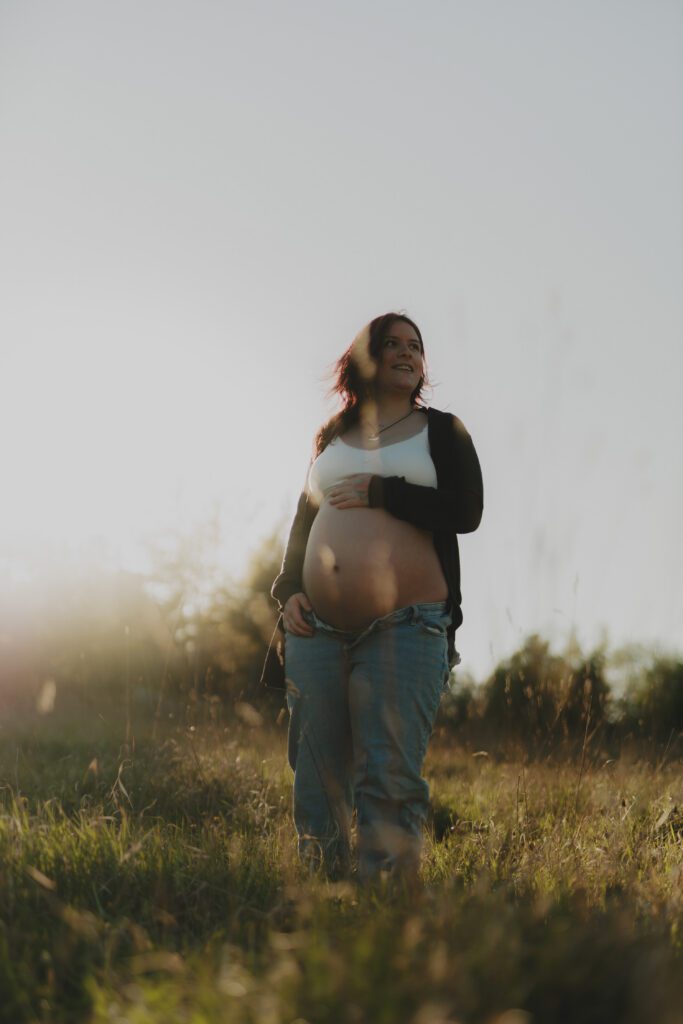 Vi hade planerat gravidfotograferingen i ett par veckor. Både Athena och jag visste att det vi ville göra var något hudnära, något som verkligen lät gravidmagen stå i centrum utan att det kändes tillgjort eller uppstyrt. Fokus skulle ligga på magen, på moderskapet och på den där naturliga styrkan som kommer när man vågar ta plats precis som man är. Vi bestämde oss för att ses ute i naturen, på en äng där kvällssolen faller mjukt och varmt under eftermiddagen.